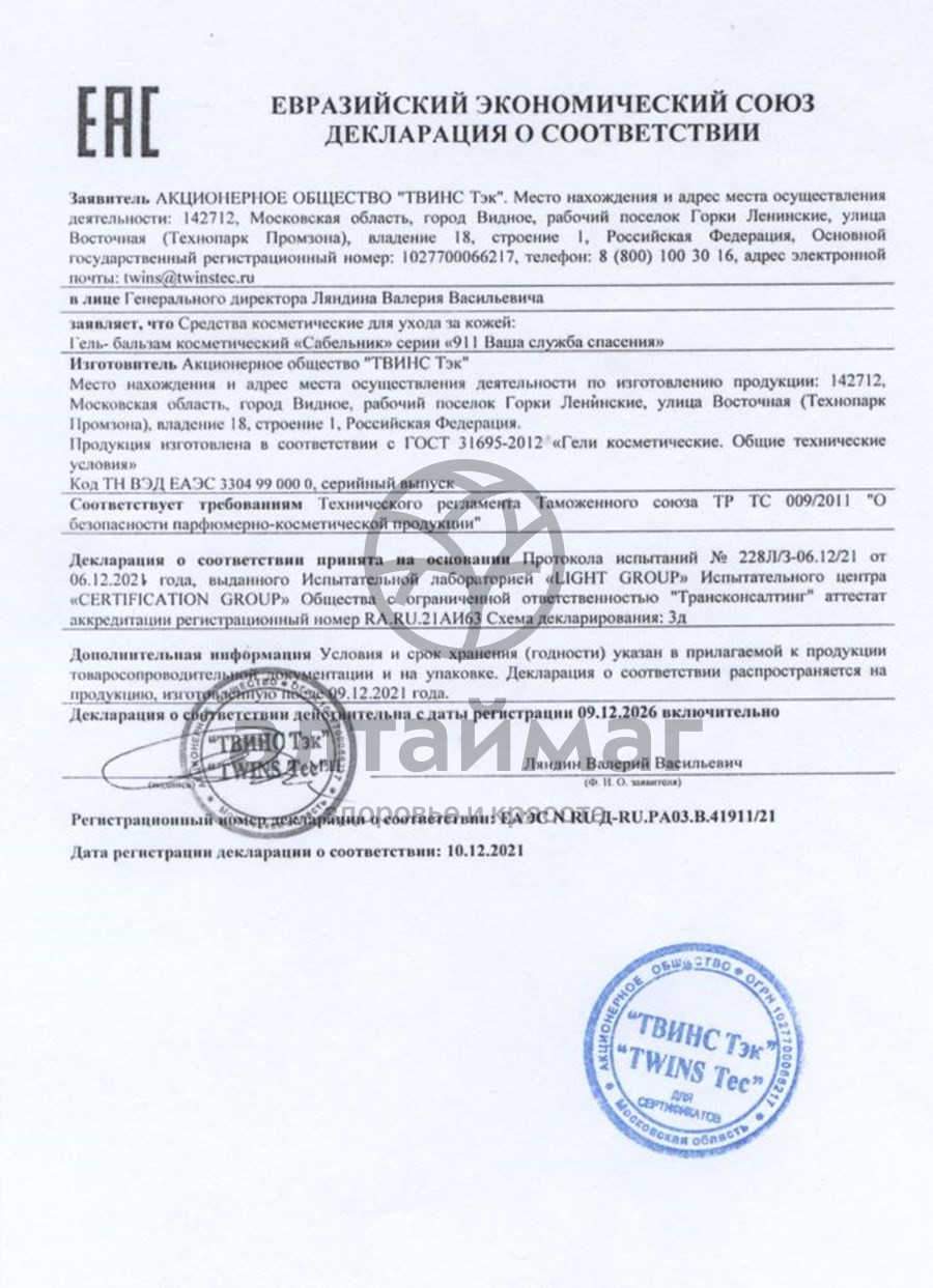 - Чтобы купить Гель-бальзам для тела САБЕЛЬНИК 911 совершите всего несколько шагов: укажите количество продукта и нажмите на кнопку «Купить».