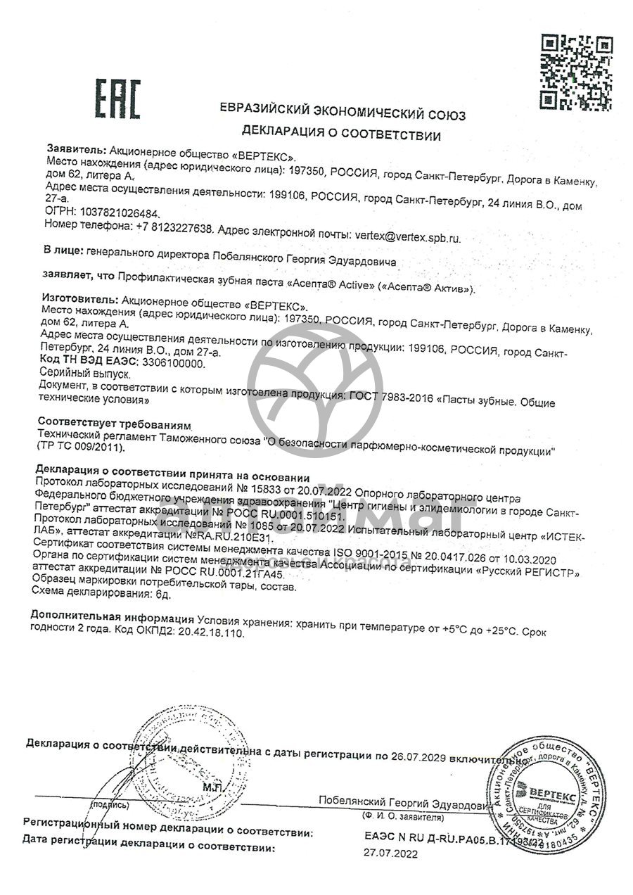 Лечебно-профилактическая зубная паста АСЕПТА® предназначен для комплексного ухода за полостью рта и защиты десен от воспаления. Лечебно-профилактическая зубная паста "Асепта" — продукт для гигиены ротовой полости, оказывающий противовоспалительный эффект. "Асепта" бережно и эффективно удаляет зубной налет, обеспечивает гигиену полости рта, оказывает противокариесное и противовоспалительное действие, придает свежесть дыханию.