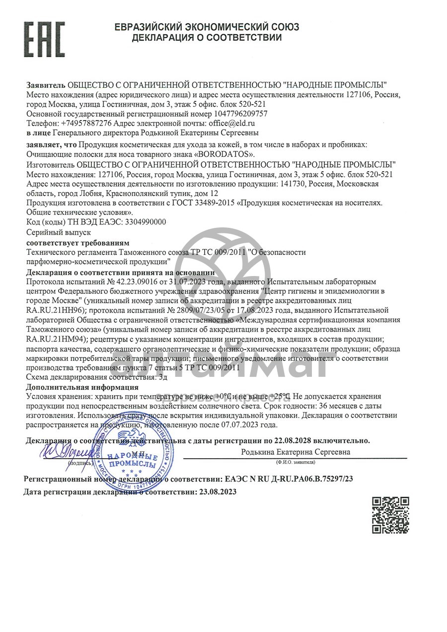 Есть вопросы по товару "Очищающие полоски для носа Borodatos 10шт"?