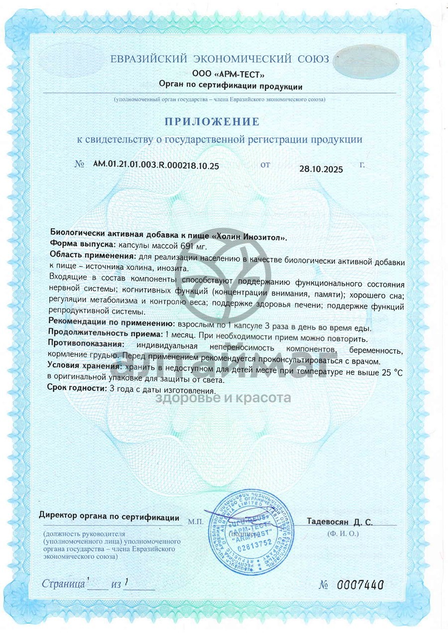 ХОЛИН ИНОЗИТОЛ — Биологически активная добавка (БАД) к пище — источник холина, инозита.