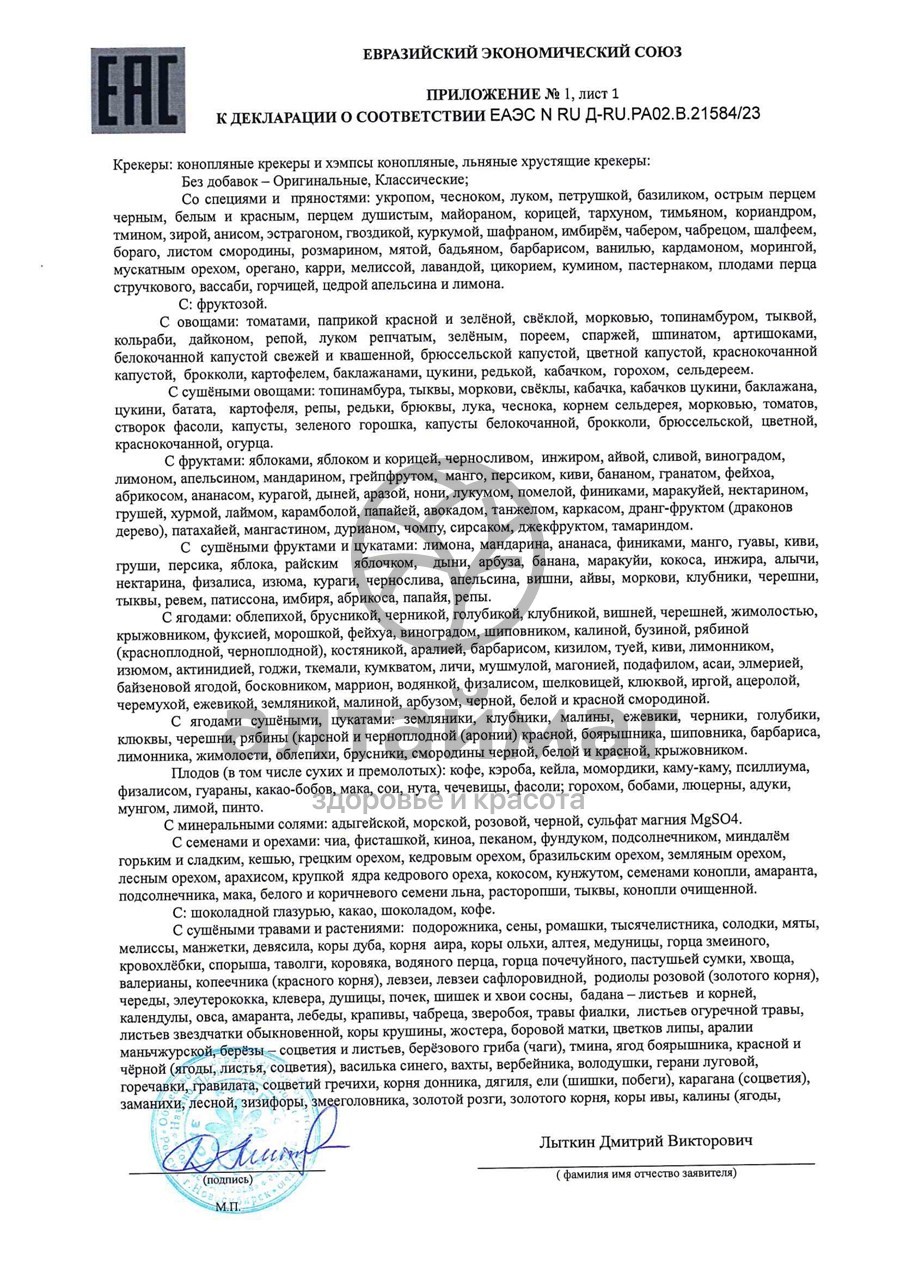 Льняные крекеры – это лакомство, наполненное пользой. Одной порции крекеров хватит для сытного перекуса, а удобный формат позволит взять угощение с собой. Продукт не содержит: красители, ГМО, консерванты, молоко, яйца, глютен.