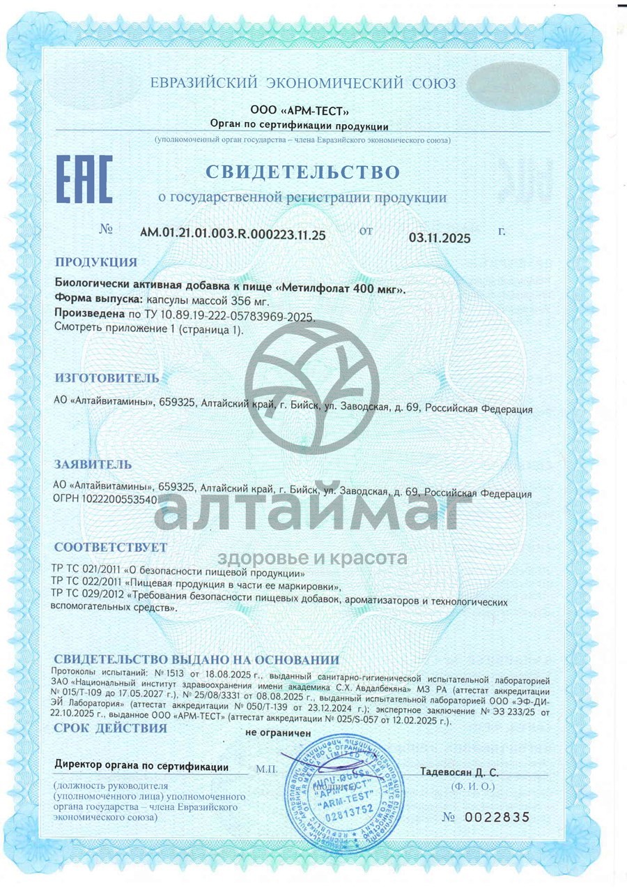 Есть вопросы по товару "Метилфолат БАД Алтайвитамины 60 капсул"?