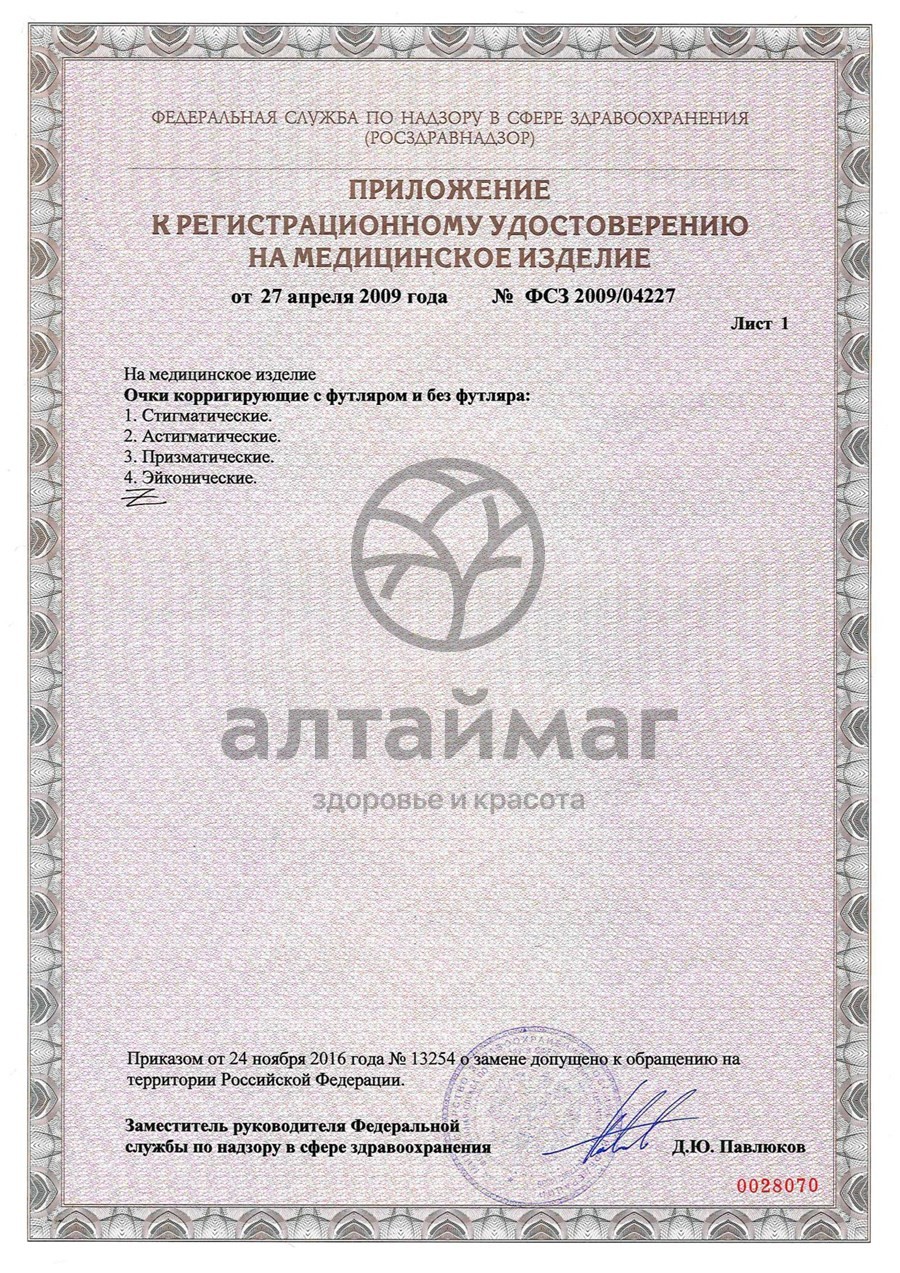 Диоптрии: +0,25 до +6,00 (шаг 0,25)