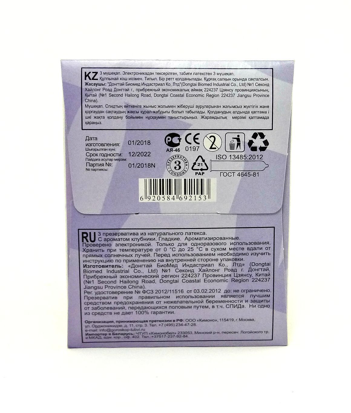 3 презерватива из натурального латекса в силиконовой смазке с ароматом клубники. В блоке 48шт с точечной и гладкой текстурой поверхности.