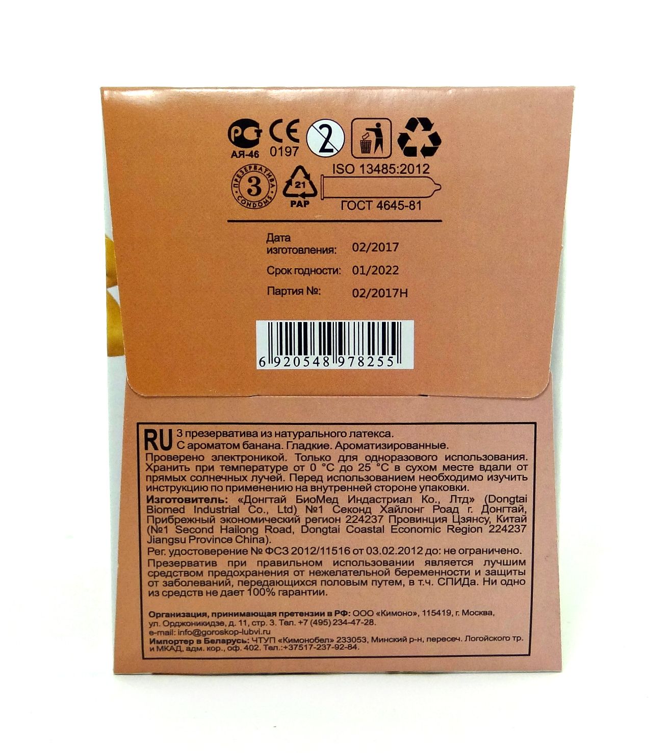3 презерватива из натурального латекса в силиконовой смазке с ароматом банана. В блоке 48шт с точечной и гладкой текстурой поверхности.